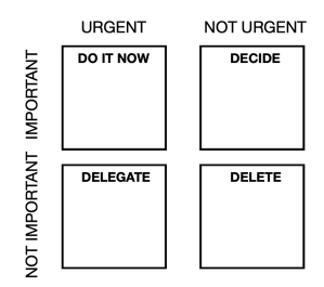 - Neither urgent nor important – task that can be eliminated or deleted.