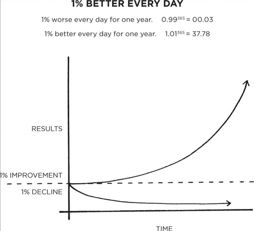 In the book Atomic Habit by James Clear also highlighted improving 1% isn’t measurable at the moment but built over time can be astounding.